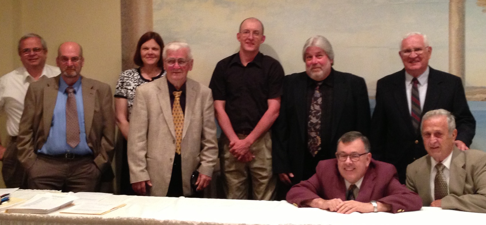 Left to right, standing: Bob Konopka (Supervisory Committee chairman & board member), Mike Kraynak (Vice President), Ann Marie Barcheski (board member), Andy Kopcho (board member), Gene Yedlock (board member), Joe Bruno (President), Joe Schappert (former board member & past President)